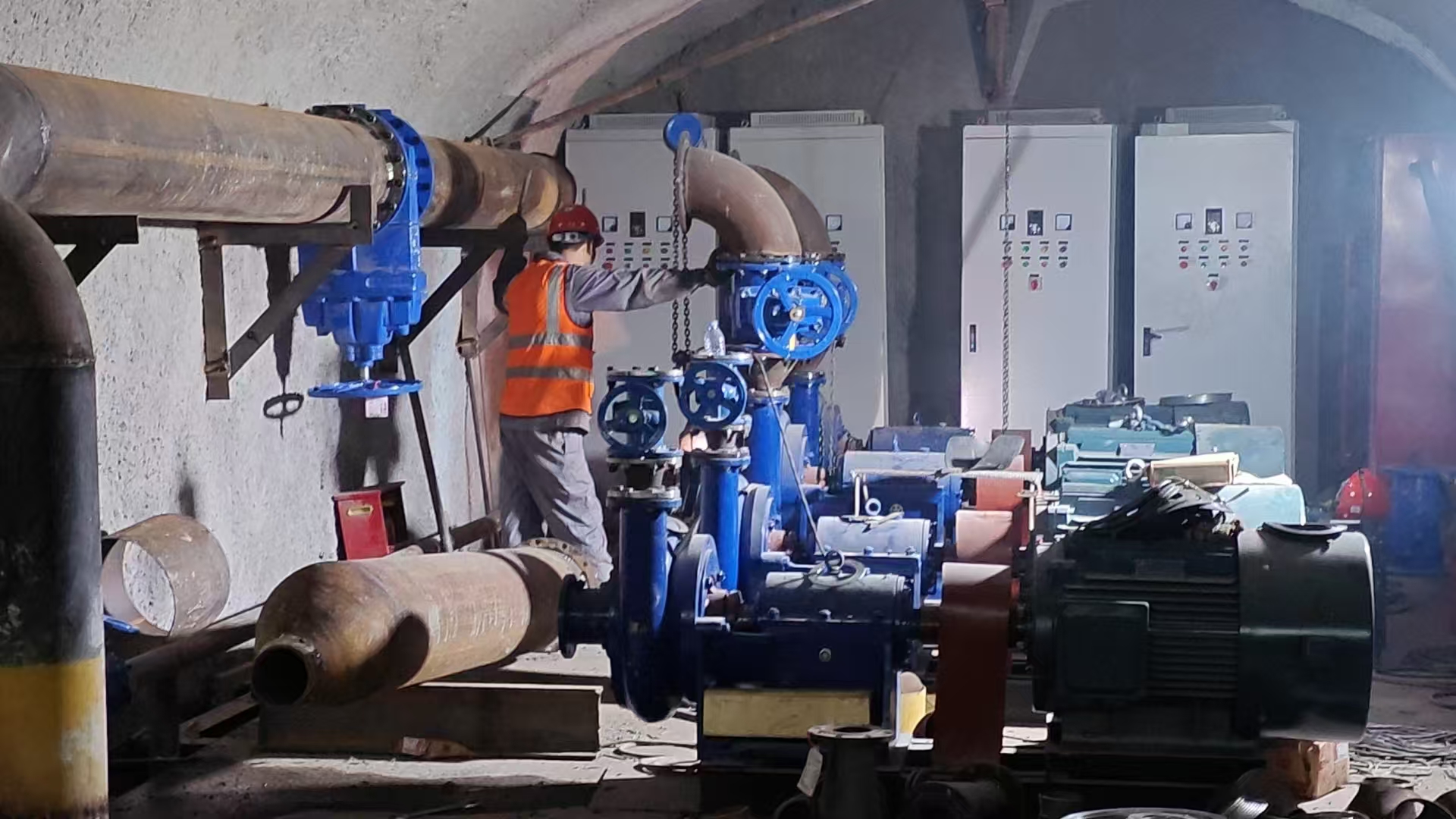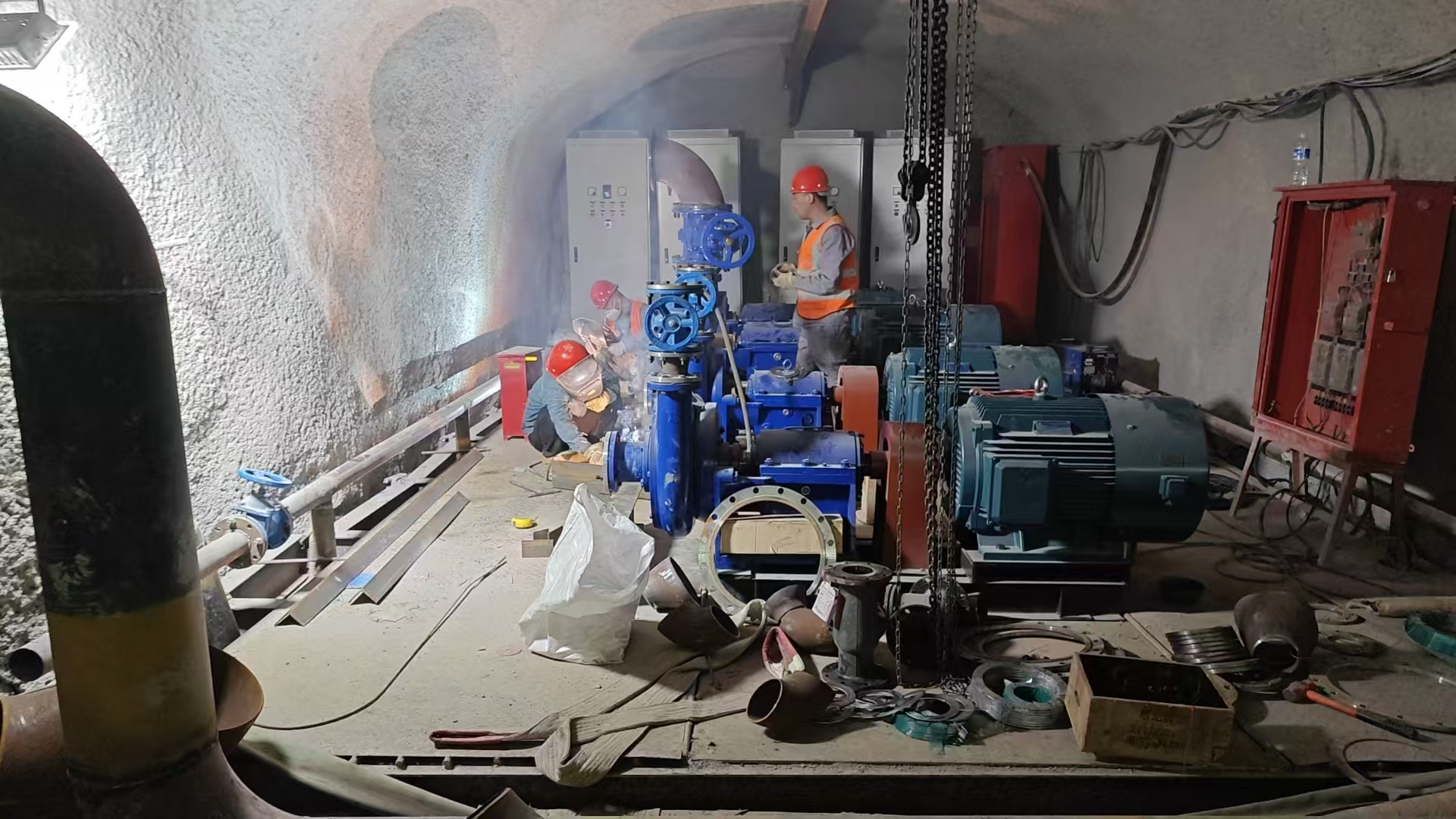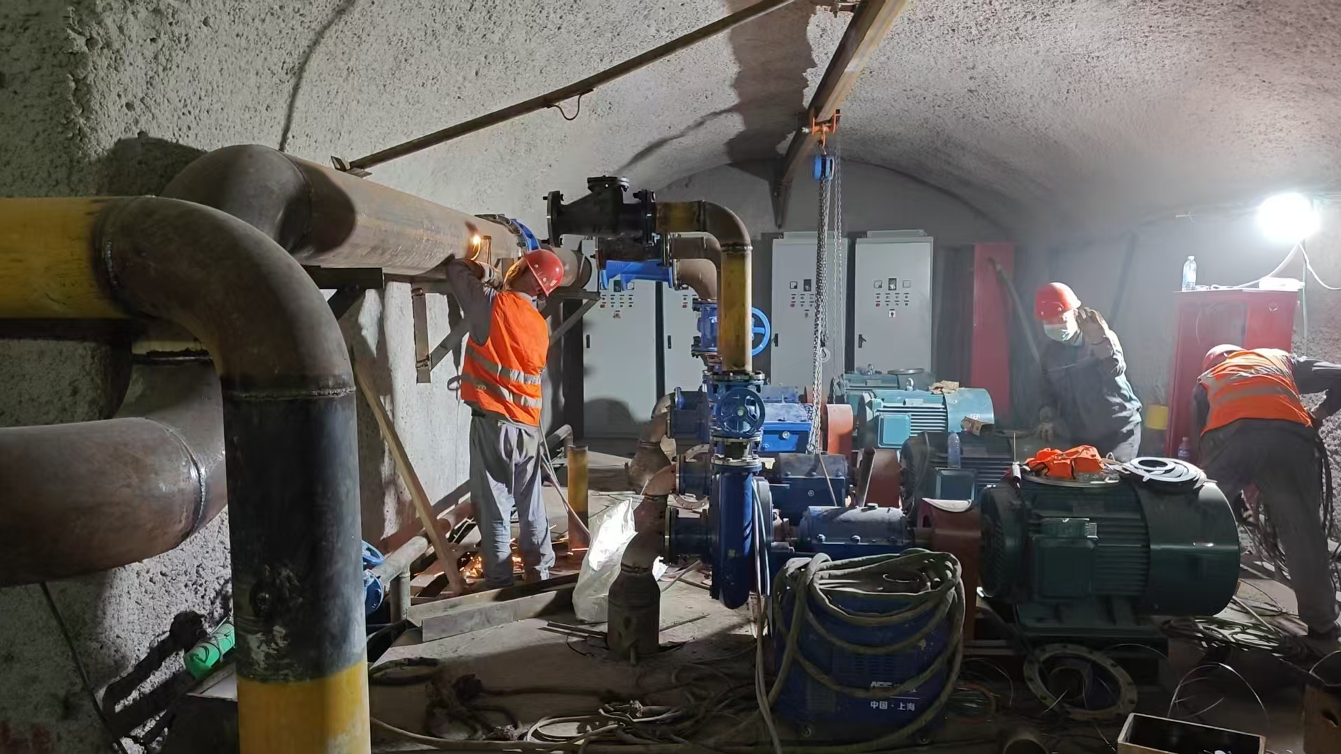 根據(jù)鐵路隧道的工程進(jìn)度,第三批主排水泵已進(jìn)場(chǎng)完畢,立即投入緊張的安裝工作。第三批主排水泵清水泵功率為90KW 4臺(tái),污水泵功率為75KW 4臺(tái),共計(jì)8臺(tái),為不耽誤工程整體進(jìn)度,安裝工作設(shè)備進(jìn)場(chǎng)立即開始,預(yù)計(jì)將按期完成安裝工作,在端午節(jié)后開始調(diào)試。